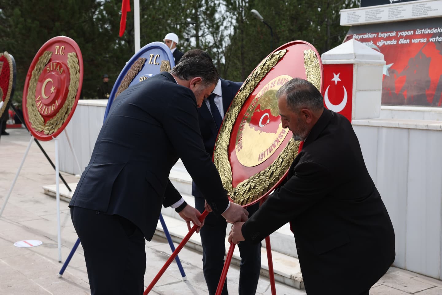 Sayın Valimiz Yılmaz Şimşek, Garnizon 5’inci Piyade Tugay Komutanımız Piyade Albay Cüneyt Mutlu, Belediye Başkanımız Adem Uzun ve protokol üyeleri ile birlikte, aziz şehitlerimizin anısına çelenk sunduk. Ardından, şehit ailelerimiz ve gazilerimizle birlikte şehitlerimizin kabirlerini ziyaret ederek dualar ettik ve naaşlarına karanfiller bıraktık.